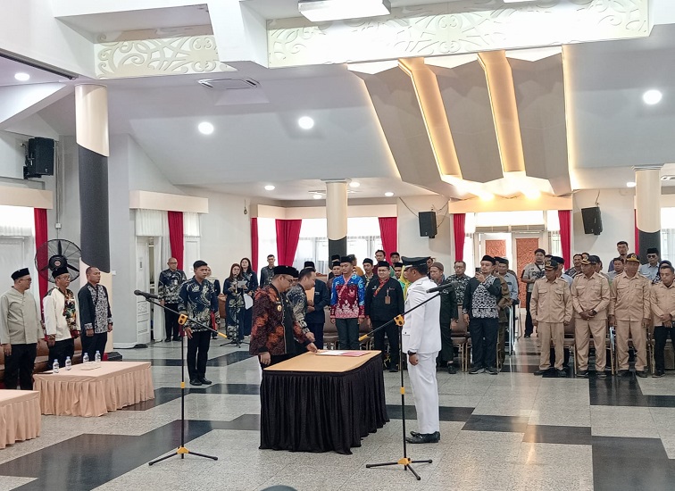 Bupati Kukar dr. Aulia Rahman Basri saat melantik Pj. Kades Jonggon Desa, Indra Herman Kusuma. (Lingkar Kaltim/M. As'ari)